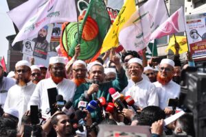 জুলাই জাতীয় সনদ বাস্তবায়নের আদেশ জারি, নভেম্বরে গণভোটসহ ৫ দফা’ দাবিতে বাংলাদেশ জামায়াতে ইসলামীর নেতৃত্বে সমমনা ৮ দলের পক্ষ থেকে প্রধান উপদেষ্টার নিকট স্মারকলিপি প্রদান করা হয়েছে। বৃহস্পতিবার (৬ নভেম্বর) সকালে স্মারকলিপি প্রদান পূর্বে মতিঝিল শাপলা চত্বরে বাংলাদেশ জামায়াতে ইসলামীর কেন্দ্রীয় নির্বাহী পরিষদ সদস্য ও ঢাকা মহানগরী দক্ষিণের আমীর মো. নূরুল ইসলাম বুলবুলের সভাপতিত্বে এক পথসভা অনুষ্ঠিত হয়। সভায় প্রধান অতিথি হিসেবে উপস্থিত ছিলেন বাংলাদেশ জামায়াতে ইসলামীর সেক্রেটারি জেনারেল ও সাবেক এমপি অধ্যাপক মিয়া গোলাম পরওয়ার।